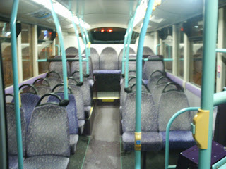 We decided to do this bus so we got on and brought System One bus only tickets at £5.60 each. We went upstairs and the rear of the top deck was empty, so Matthew took a picture inside First Manchester 39210 before we sat down.
